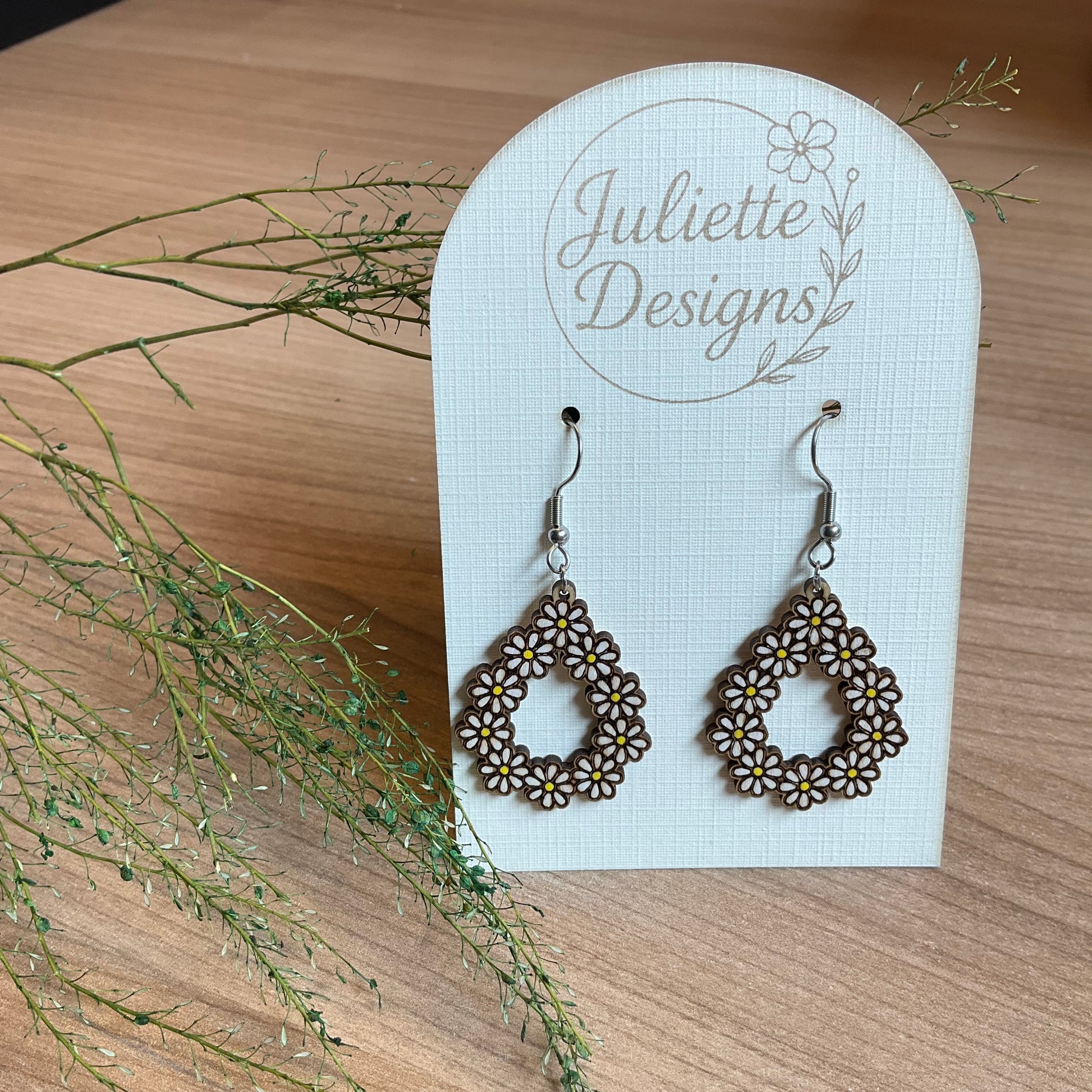 Laat je betoveren door de subtiele charme van onze Daisy-collectie. Deze unieke oorbellen zijn met liefde vervaardigd uit natuurlijk hout en gecombineerd met roestvrijstalen hangers waardoor ze niet alleen stijlvol, maar ook huidvriendelijk en duurzaam zijn. Het sierlijke bloemendessin brengt een vleugje vrolijkheid en elegantie in je dagelijkse look. Perfect om jezelf of iemand anders blij mee te maken!