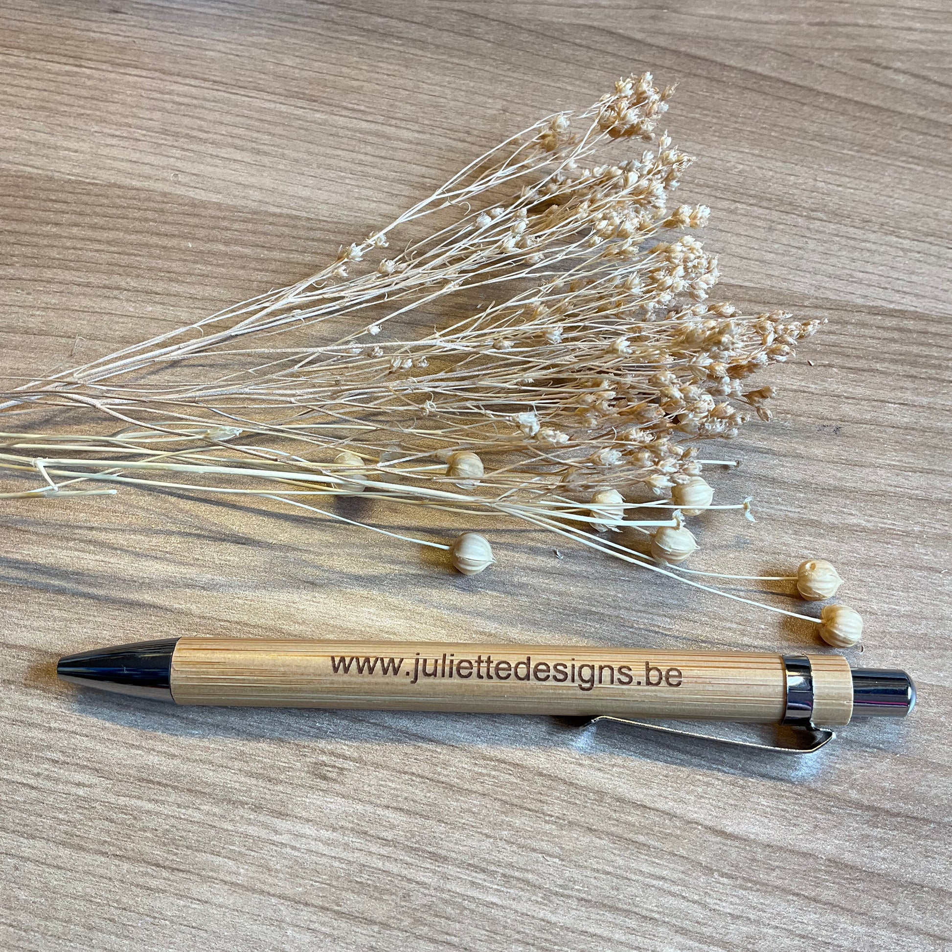 Laat je naam, bedrijf of boodschap stralen op een stijlvolle houten balpen.