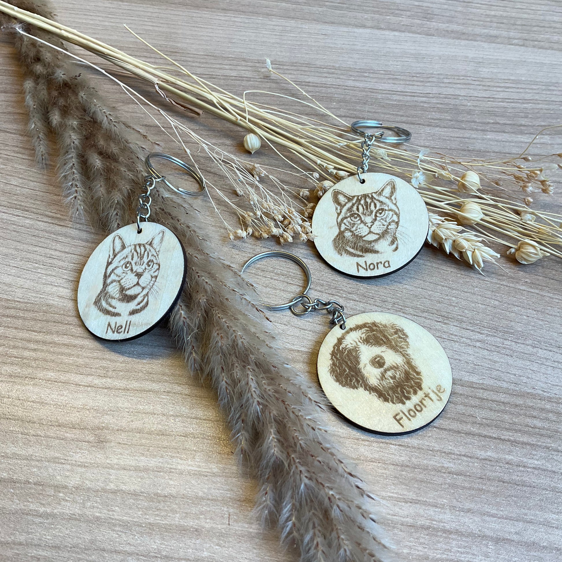 Op zoek naar een uniek en persoonlijk cadeautje voor een dierenliefhebber (of gewoon voor jezelf)? Deze prachtige houten sleutelhanger is met liefde gegraveerd met het honden- of kattenras van jouw keuze én de naam van je huisdier.