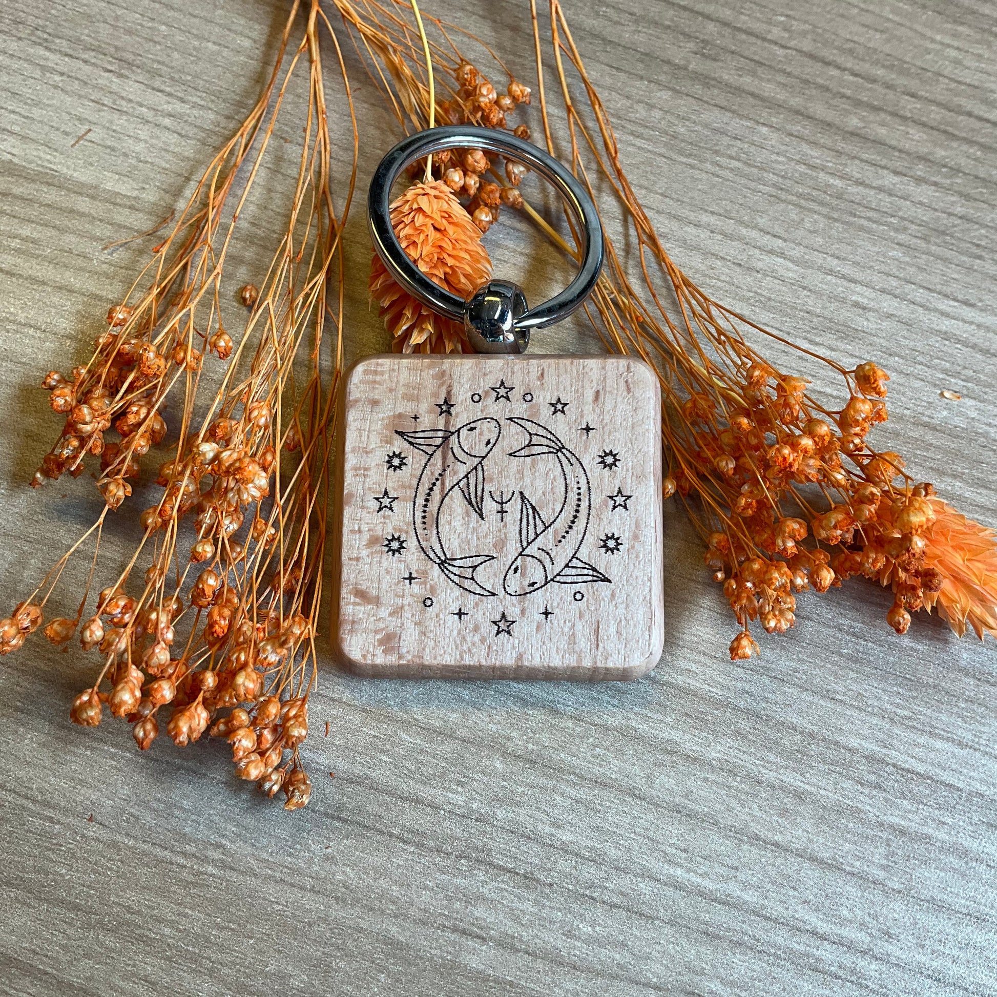 Draag je sterrenbeeld altijd bij je met deze unieke horoscoop sleutelhanger van hout. Met een strak en natuurlijk design van 4x4 cm is deze sleutelhanger niet alleen stijlvol, maar ook persoonlijk. Perfect als klein cadeautje of gewoon voor jezelf.