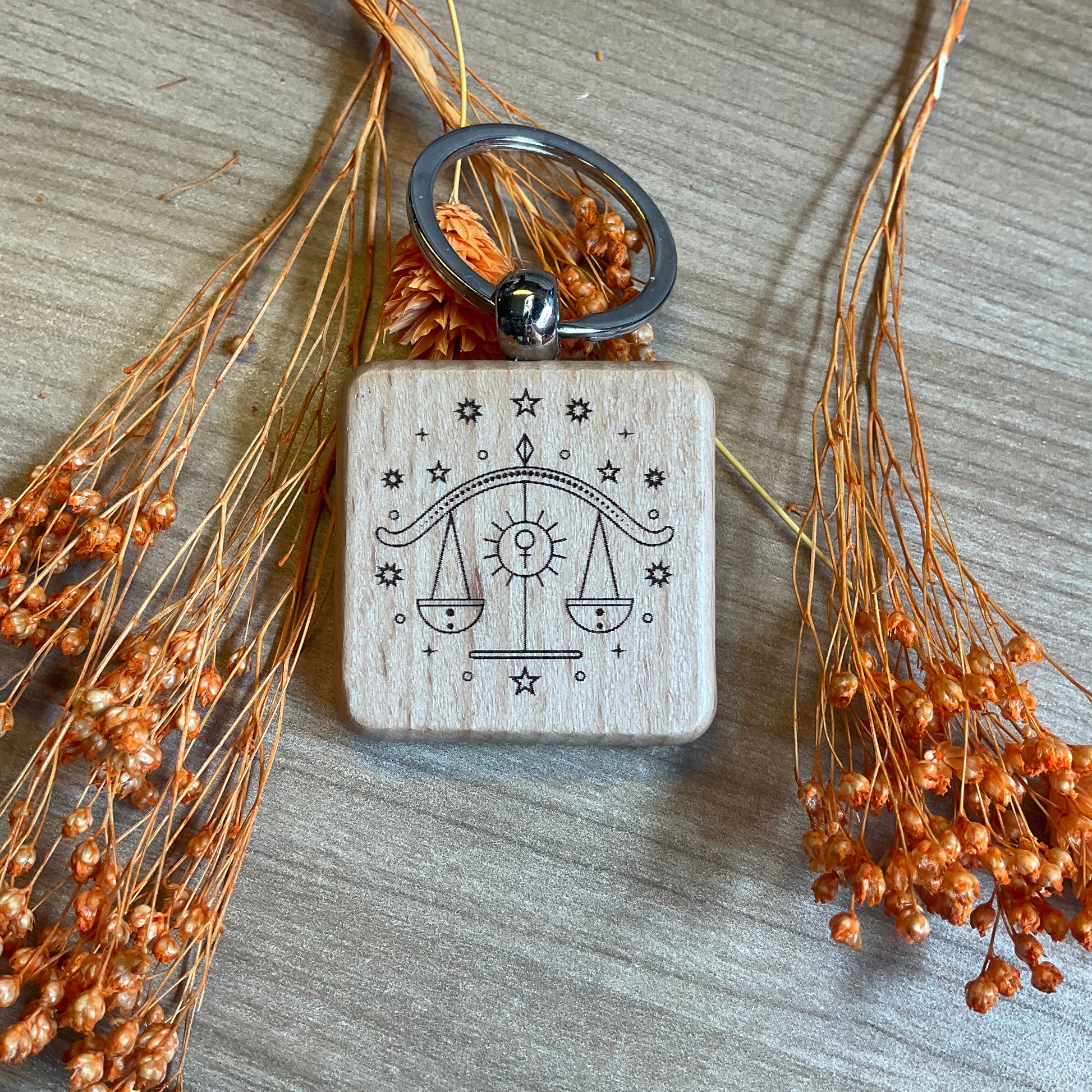 Draag je sterrenbeeld altijd bij je met deze unieke horoscoop sleutelhanger van hout. Met een strak en natuurlijk design van 4x4 cm is deze sleutelhanger niet alleen stijlvol, maar ook persoonlijk. Perfect als klein cadeautje of gewoon voor jezelf.