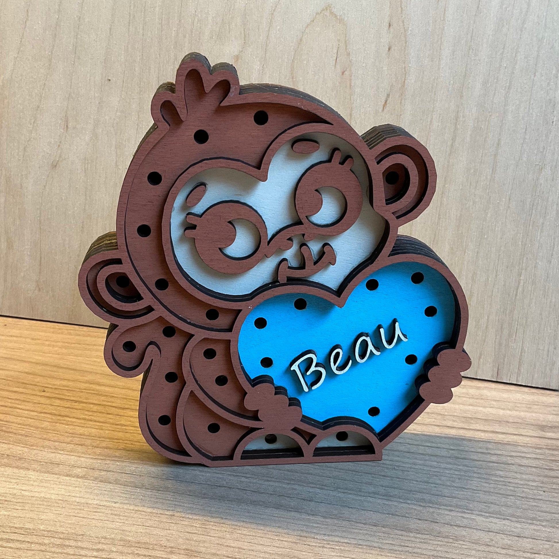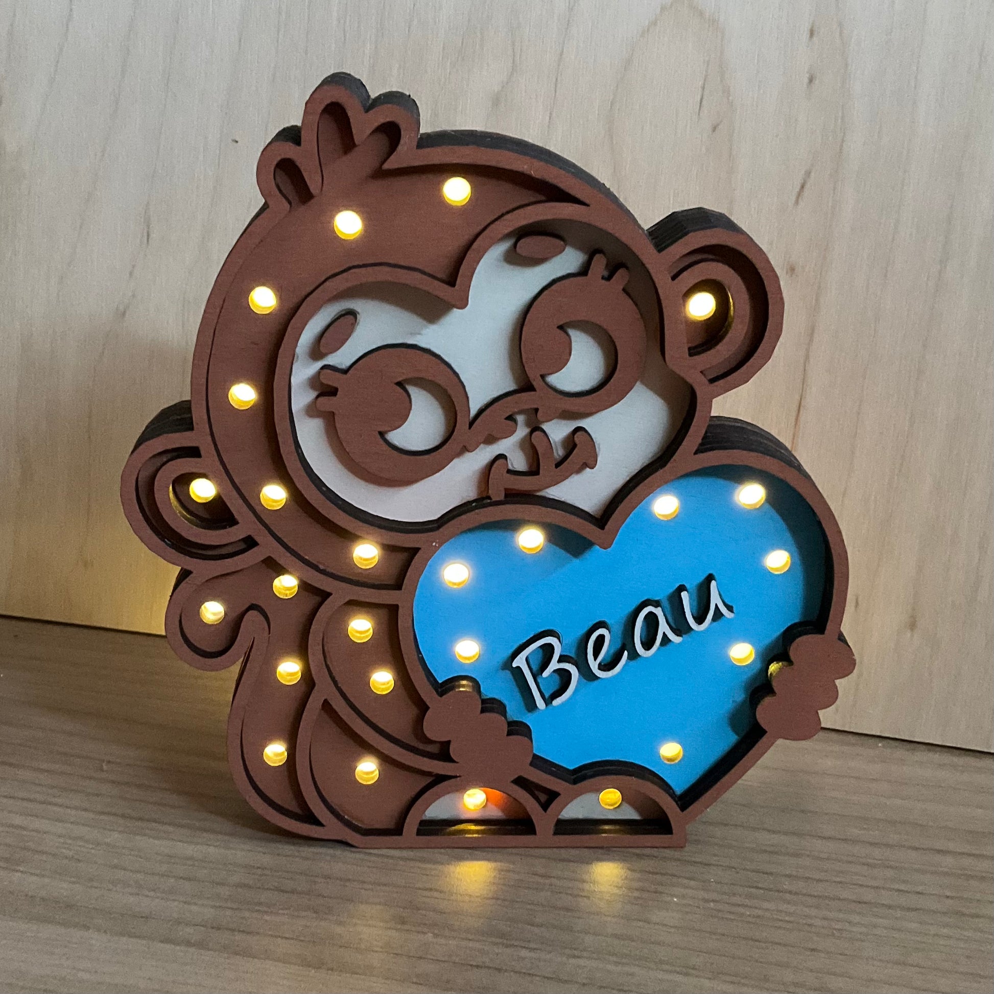 Breng warmte en sfeer in huis met dit unieke houten lampje, liefdevol ontworpen en gepersonaliseerd naar jouw wens. Ideaal als cadeau voor een geboorte, doop, verjaardag of gewoon om iemands naam te laten stralen!
