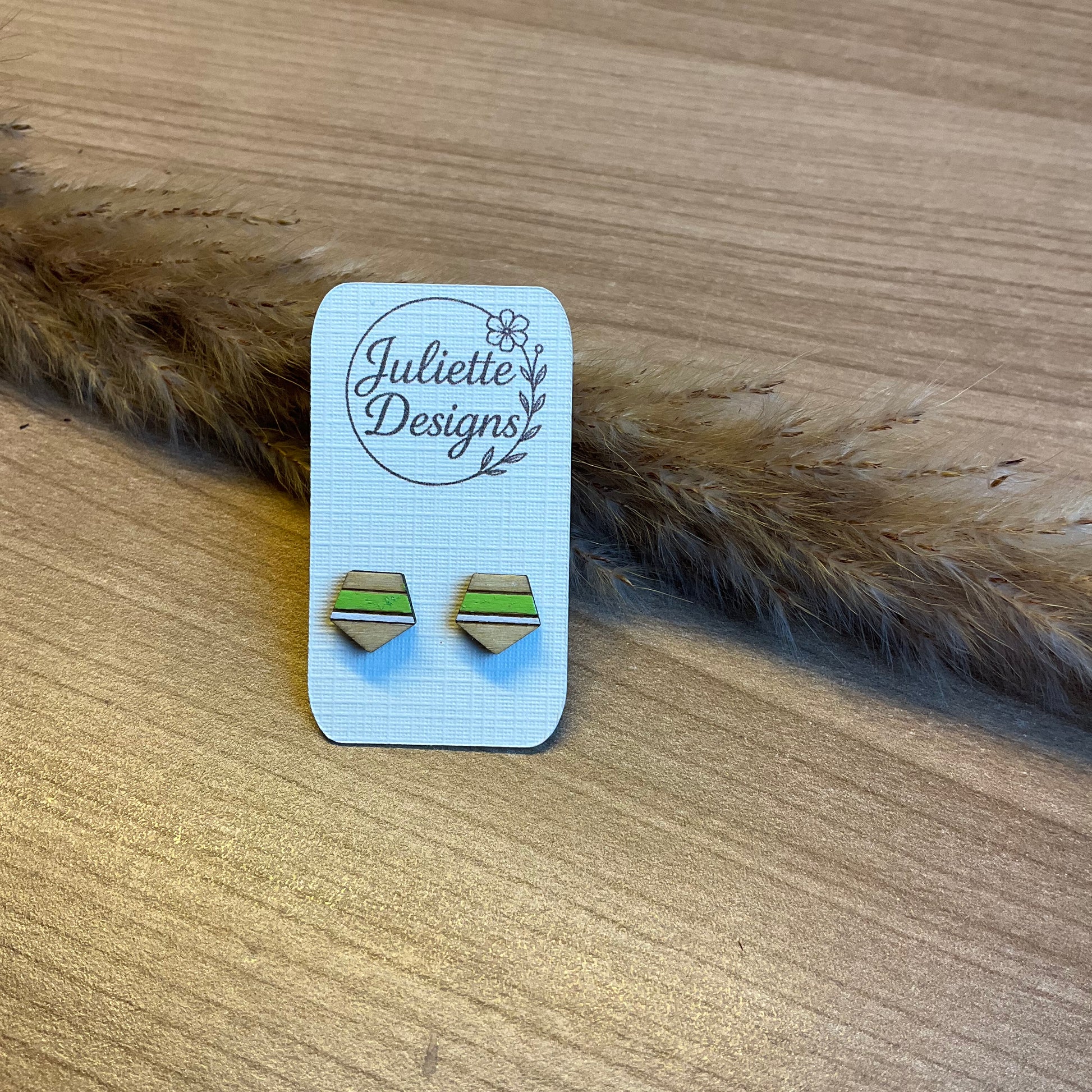 Minimalistisch, maar met karakter, deze houten oorstekers uit de GeoChic-collectie combineren natuurlijke vormen met een vleugje kleur.