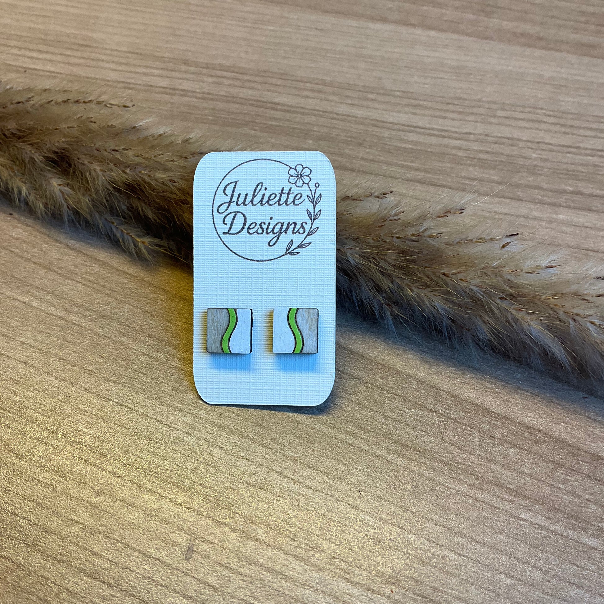 Minimalistisch, maar met karakter, deze houten oorstekers uit de GeoChic-collectie combineren natuurlijke vormen met een vleugje kleur.
