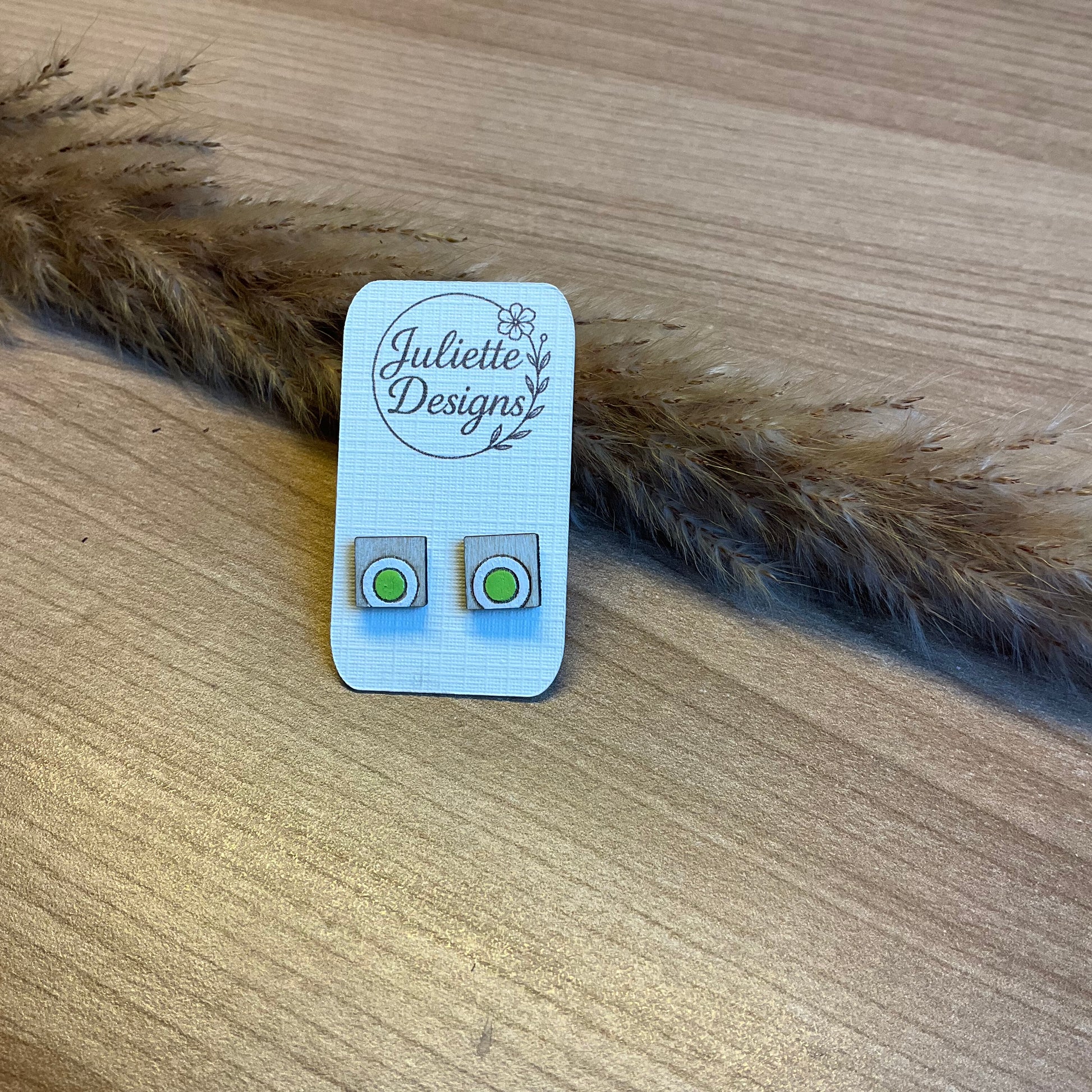 Minimalistisch, maar met karakter, deze houten oorstekers uit de GeoChic-collectie combineren natuurlijke vormen met een vleugje kleur.