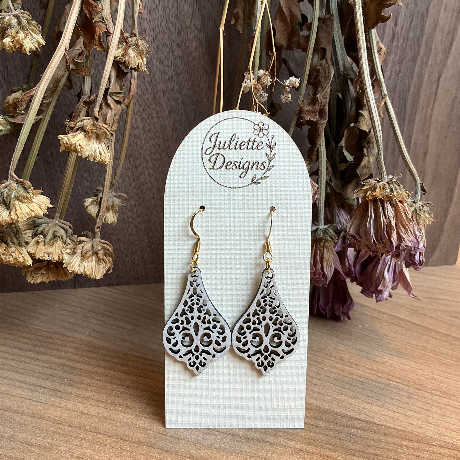 Onze elegante oorhangers zijn met zorg ontworpen en gesneden uit hout en afgewerkt met roestvrijstalen haakjes, ideaal voor dagelijks gebruik én feestelijke gelegenheden.