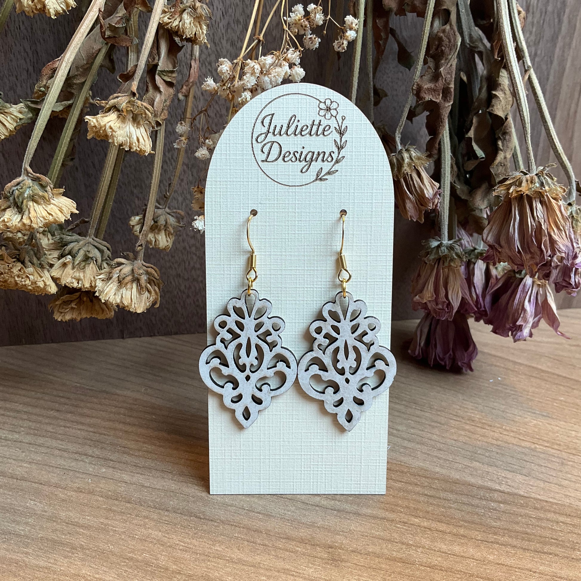 Onze elegante oorhangers zijn met zorg ontworpen en gesneden uit hout en afgewerkt met roestvrijstalen haakjes, ideaal voor dagelijks gebruik én feestelijke gelegenheden.