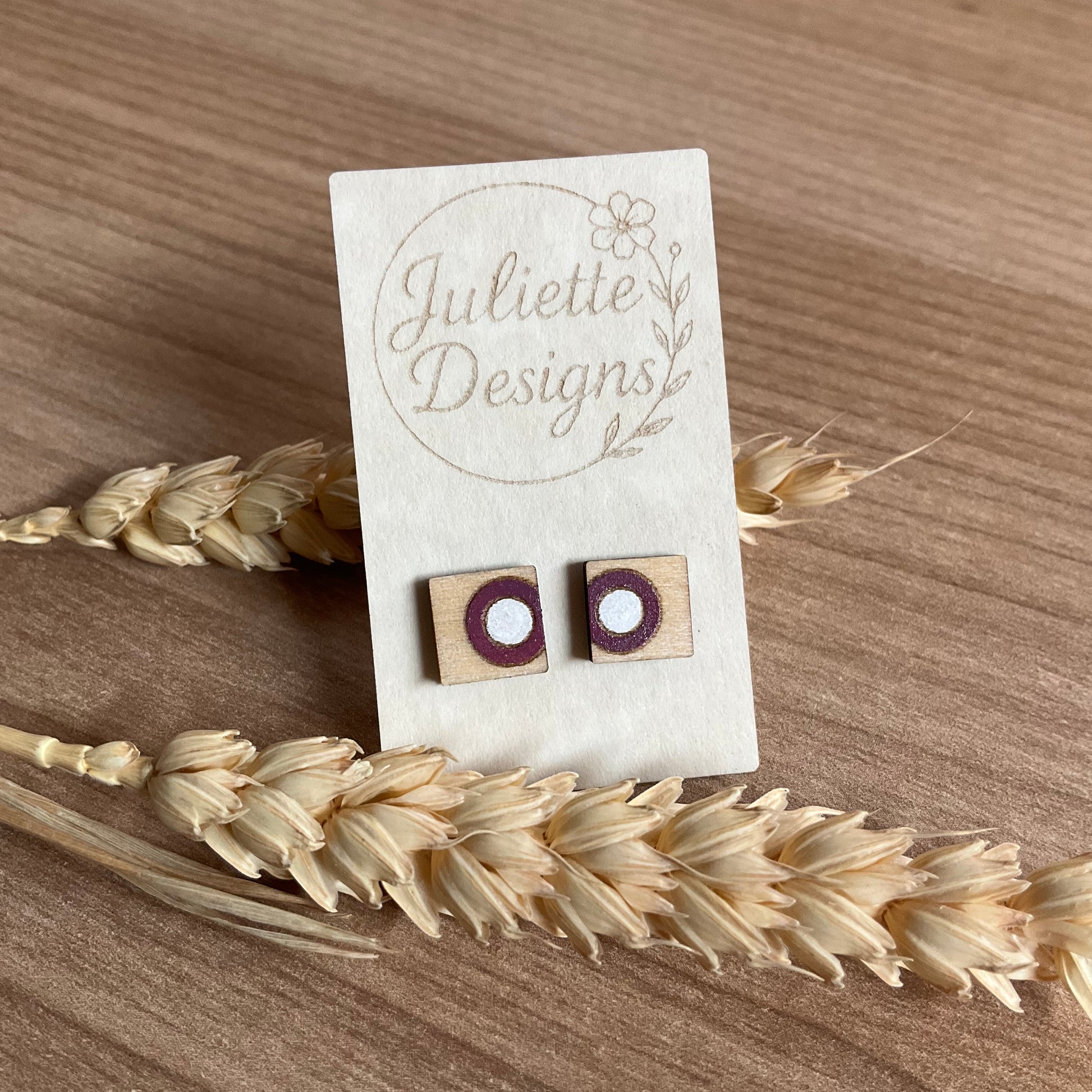 Oorstekers square - bordeaux/wit 3