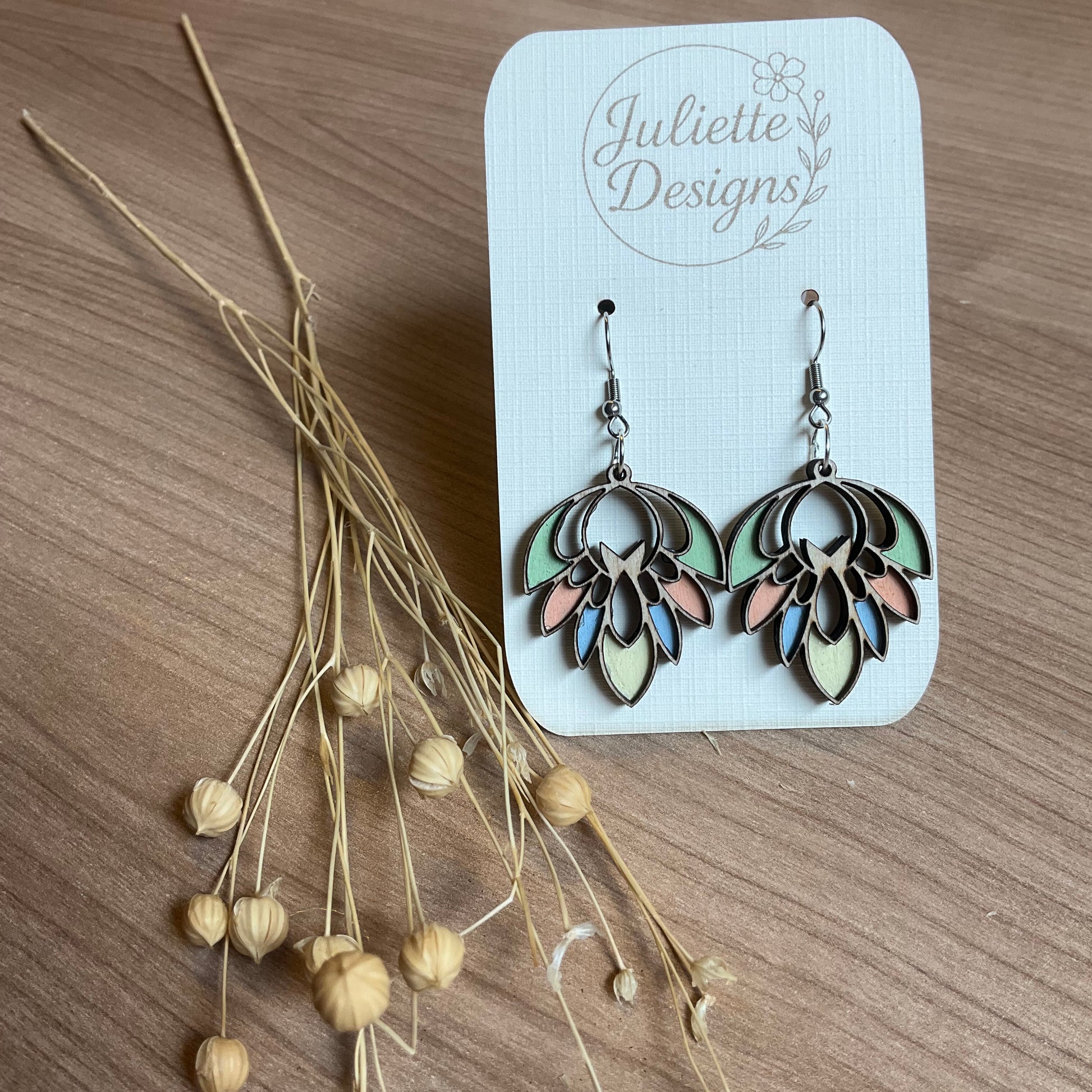 Laat je betoveren door de zachte kleuren en unieke vormen van onze Pastel Vibes collectie. Elk paar oorbellen is met zorg vervaardigd uit lichtgewicht hout en afgewerkt met roestvrijstalen haakjes, perfect voor gevoelige oren.