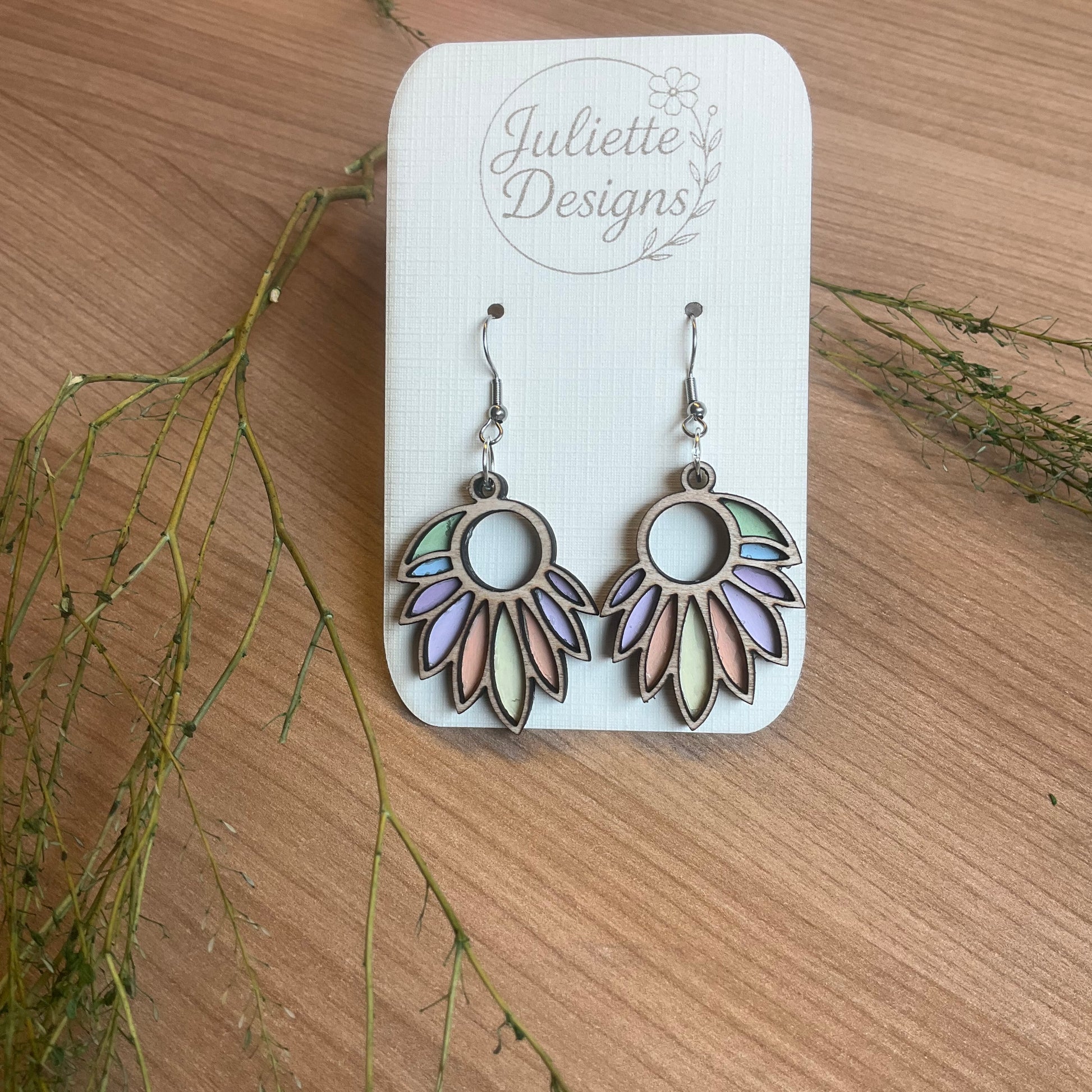 Laat je betoveren door de zachte kleuren en unieke vormen van onze Pastel Vibes collectie. Elk paar oorbellen is met zorg vervaardigd uit lichtgewicht hout en afgewerkt met roestvrijstalen haakjes, perfect voor gevoelige oren.